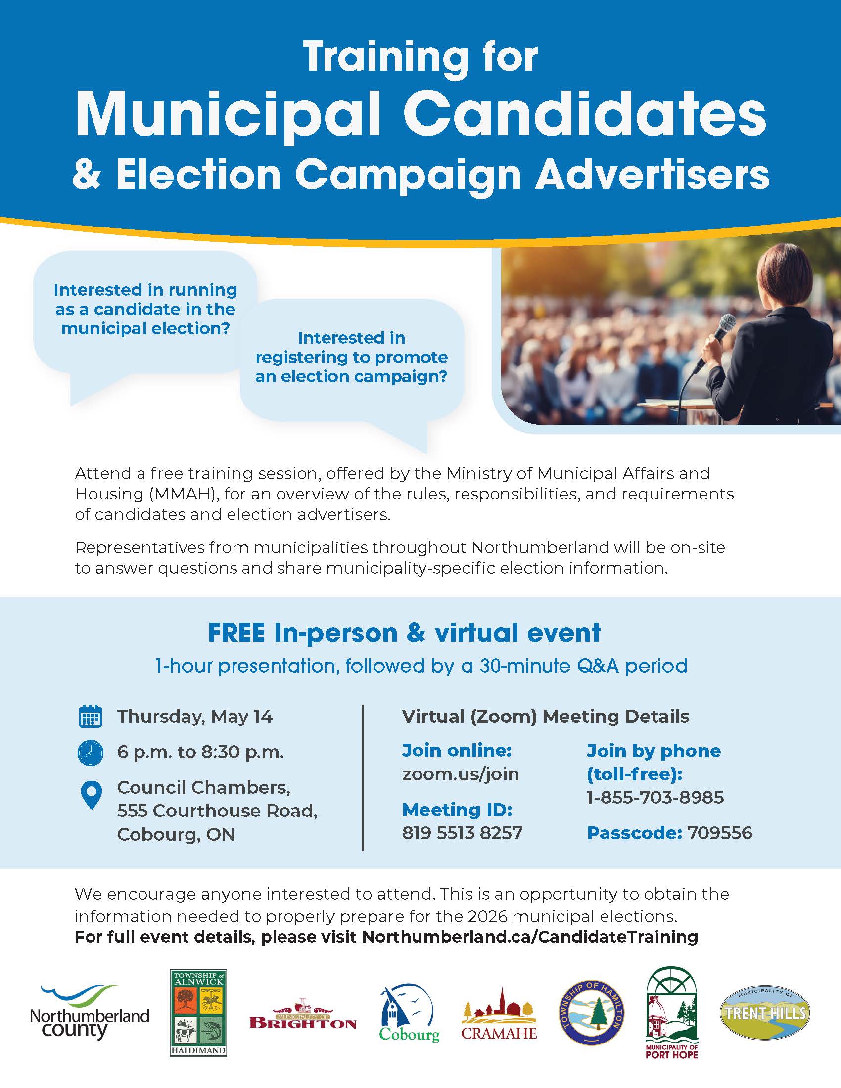 Northumberland County and its seven member municipalities invite residents to learn more about how to get involved in the upcoming 2026 municipal election.